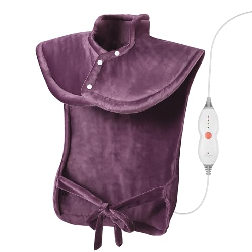 Elektrisk Värmekudde för Rygg, Axlar & Nacke 60x85 cm, 4 Värmeinställningar, Automatisk Avstängning & Överhettningsskydd (Lila)