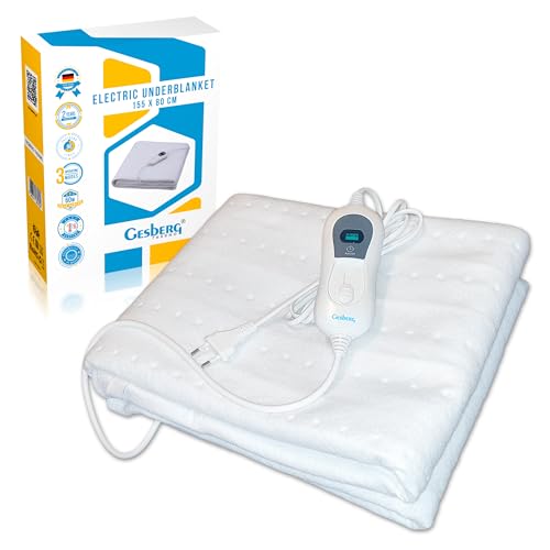 GESBERG Värmefilt med 90 minuters automatisk avstängning – elektrisk värmekudde med 3 värmenivåer för säng och soffa – värmefilt – värmeundersäng 60 W, 150 x 80 cm – värmefiltar, tvättbar, vit