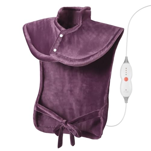 Värmekudde för rygg axel hals 60 x 85 cm med 4 temperaturnivåer, elektrisk värmekudde med automatisk avstängning och överhettningsskydd, maskintvättbar ryggvärmare värmefilt