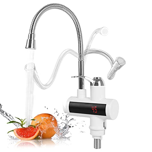 HOGART Elektrisk kran med varmvattenberedare 230 V för kök, trädgård, badrum, husvagn, camping, 2 tillbehör, smart värmare, kran med omedelbar varmvattenberedare, varmvattenkran, vattenkokare