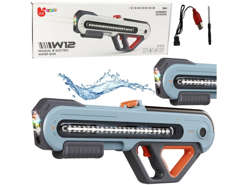 Stor Pistol W12 Elektrisk Vattenpistol Led Grå 60 Cm Lean Toys