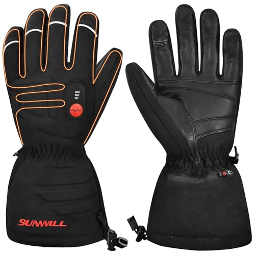 Sun Will Uppladdningsbara motorcykeluppvärmda handskar, vinterhandskar med batteri 7,4 V, 2 200 mAh, för män, kvinnor, elektriska uppvärmda handskar för snöskidåkning, motorcykel, camping, vandring,