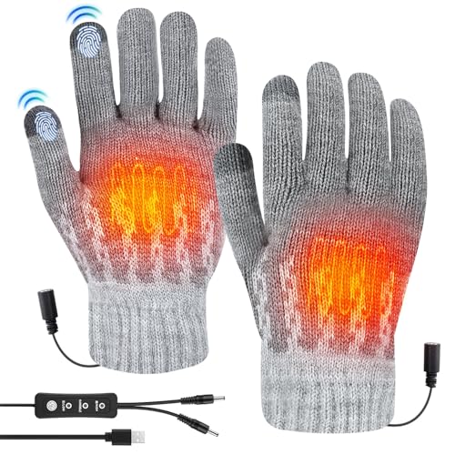 Aceshop USB-uppvärmda handskar för män kvinnor, elektriska uppvärmda handskar med dubbelsidiga uppvärmda vinterfingerhandskar med pekskärmsfingrar och 3 justerbara temperaturer vintergåva (grå, en