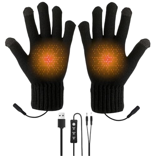 Nircho USB-uppvärmda handskar för män och kvinnor, dubbelsidiga uppvärmda mjuka termiska handskar, tvättbara pekskärm elektriska uppvärmda handskar justerbar temperatur vinter varma stickade handskar