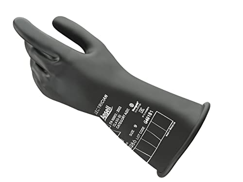 Ansell ActivArmr E014B Elektrikerhandskar Klass 0 (1000V), Isolerade arbetshandskar, Skyddande gummihandskar, Isolerade elektriska handskar Män Kvinnor, Svart, L (1 Par)