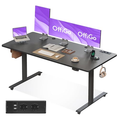OffiGo höj- och sänkbart skrivbord, elektriskt höj- och sänkbart skrivbord 160cm, 2 minnesfunktioner, för kontor, hem, gaming, Svart