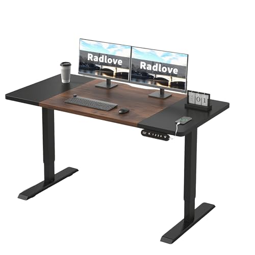 Radlove Höjdjusterbart elektriskt stående skrivbord med 4 minneskontroller och anti-kollisionsteknik (60 x 140 cm, Svart + brun)