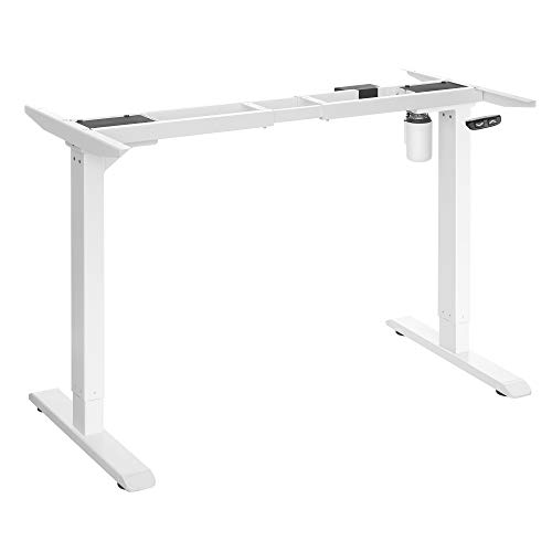 SONGMICS Skrivbordsställning, höjdjusterbar, skrivbordsställning, elektriskt skrivbord, skrivbordsstativ med motor, justerbar längd, stål, vit LSD010W01