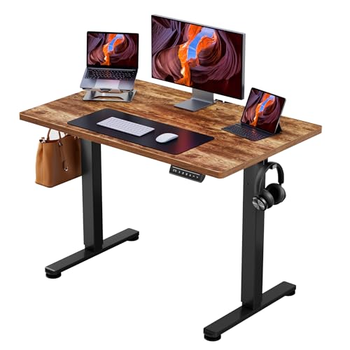 Marsail stående skrivbord justerbar höjd, elektriskt stående skrivbord med rymdskeppsväska, stående skrivbord för hemmakontor datorskrivbord minne förinställt med hörlurskrok, 100 x 60 cm