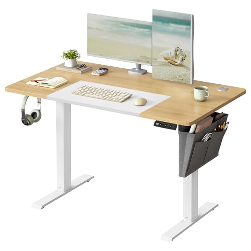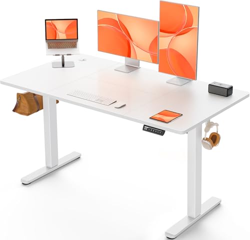 ERGOMAKER Elektriskt skrivbord 110x60 cm, Höjdjusterbart bord med Minneshandset & Krok, Sit stand skrivbord för Hemmakontor (Vit)