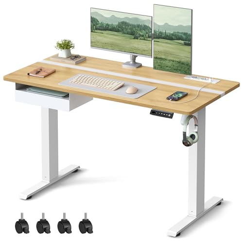 ErGear Elektriskt höjdjusterbart skrivbord 100 x 60 cm, skrivbord justerbar höjd med 4 minnesssmart lugg för hemmakontor med anslutningsplatta