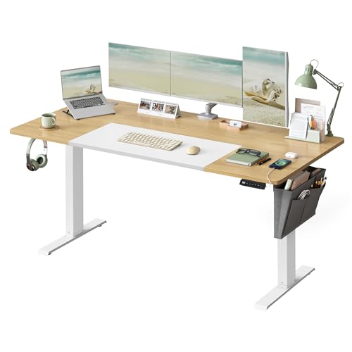 Radlove Höjdjusterbart elektriskt stående skrivbord med 4 minneskontroller och anti-kollisionsteknik (60 x 140 cm, ek + vit)