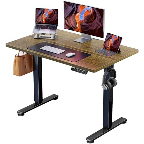 ERGOMAKER Elektriskt skrivbord 110x60 cm, Höjdjusterbart bord med Minneshandset & Krok, Sit stand skrivbord för Hemmakontor (Svart)