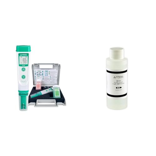 Apera Instruments AI209 Vattentät pH-Mätare ± 0,1 pH-Noggrannhet, ± 0,5 ° C Temperatursensor, Vit/Grön & Apera Instruments elektrolyt lösning 3M (250 ml)