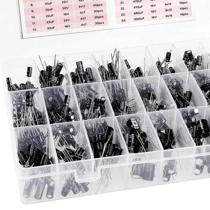 Storpack med kondensatorer (elektrolyt) 0.1uF-1000uF 10-50V, 500st