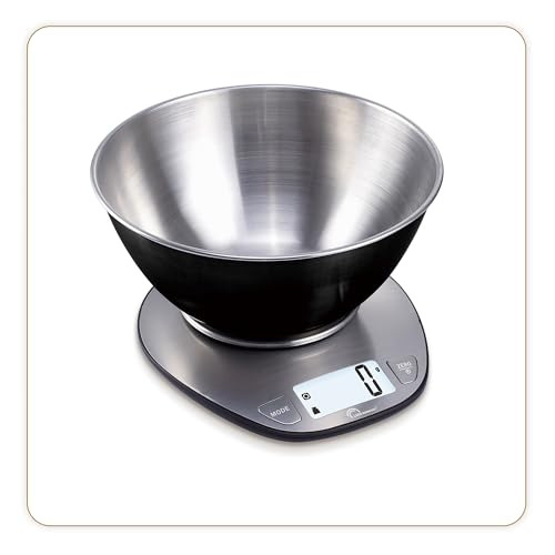 LITTLE BALANCE 8724 XB5 rostfritt stål, elektronisk köksvåg, blandningsskål i rostfritt stål 1,8 liter, 5 kg, rostfritt stål/svart