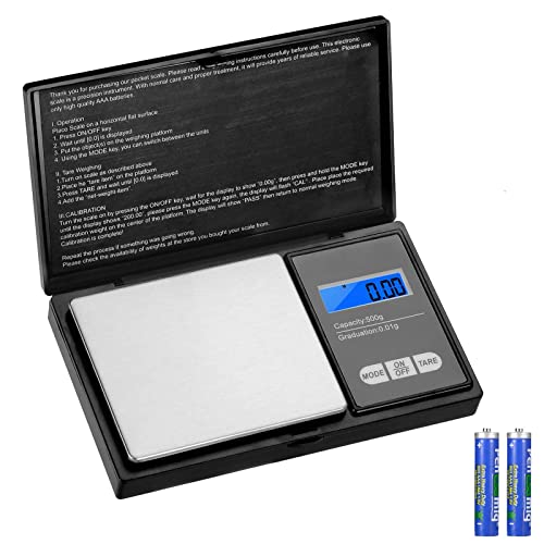 Aurora & Tithonus Precisionsvåg för kök, 500 g/0,01 g, elektronisk köksvåg, fickvåg med LCD-skärm, minidigital våg, med tarafunktion för smycken, te, kaffe