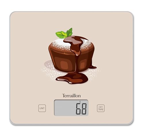 TERRAILLON - T1040 CHOCOLAT FONDANT - elektronisk köksvåg, glasbricka, kapacitet 3 kg, 1 g gradering, tara, flytande omvandlingar, ultratunn och kompakt - LCD-skärm - chokladfondant