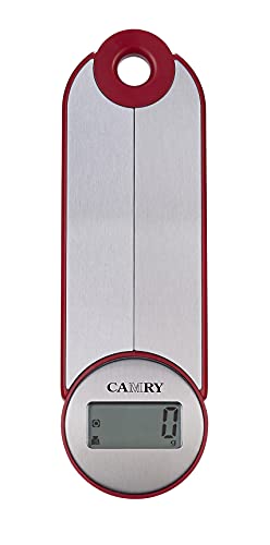 CAMRY Digital elektronisk hopfällbar köksvåg för resor camping på vägen vikbar köksvåg våg ta med dig, 5 kg/30 kg, lb: oz/g fl'oz/ml, LCD-skärm, storlek 7 x 23 cm (silverröd)