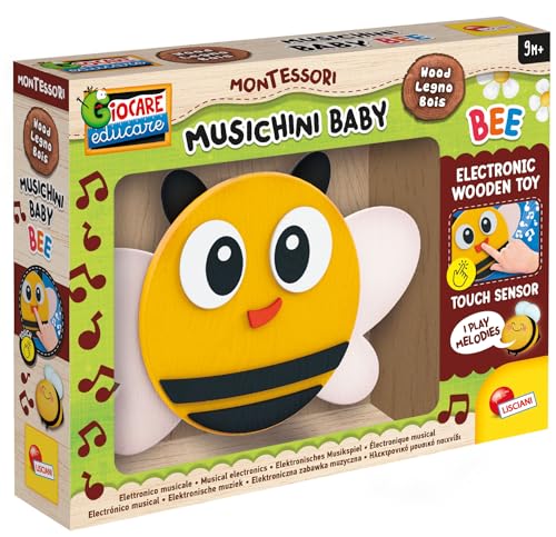 LISCIANI - Montessori Baby Wood - Music: Bee - Pedagogisk musikalisk träleksak för barn från 9 månader - Ljus och ljud - Elektronisk leksak med beröringssensorer - Stimulerar det auditiva minnet