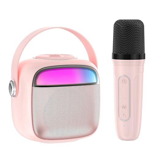 PTHTECHUS karaoke maskin barn mikrofon set leksak, bärbar Bluetooth-högtalare mikrofon karaokemaskiner för laddning elektronisk leksak rosa