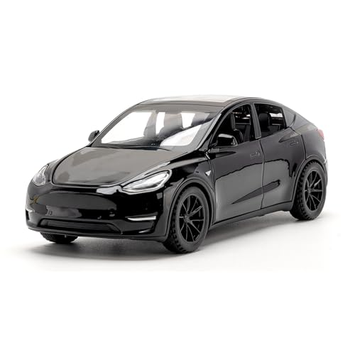 TOPRON Tesla Model Y 1:32 skala modellbil, formgjuten legering, elektronisk leksak med retryckningsfunktion, med ljus och musik, minifordonsleksak som present till barn (svart)