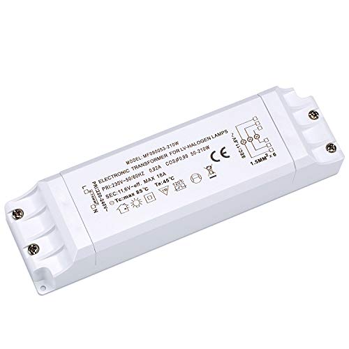 Yafido Halogen elektronisk transformator 230 V AC till 12 V AC 50–210 W, transformator överbelastningsskydd, ej dimbar, för halogenlampor