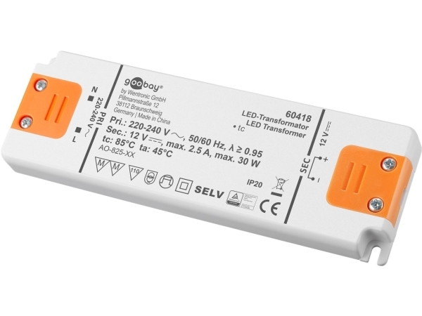 Goobay 60418, Elektronisk Transformator Till Belysning, Orange, Vit, Ip20, -20 - 45 ° C, Ce, Rohs Directive 2011/65/Eu [Ojeu L174/88-110, 01.07.2011, 30 W