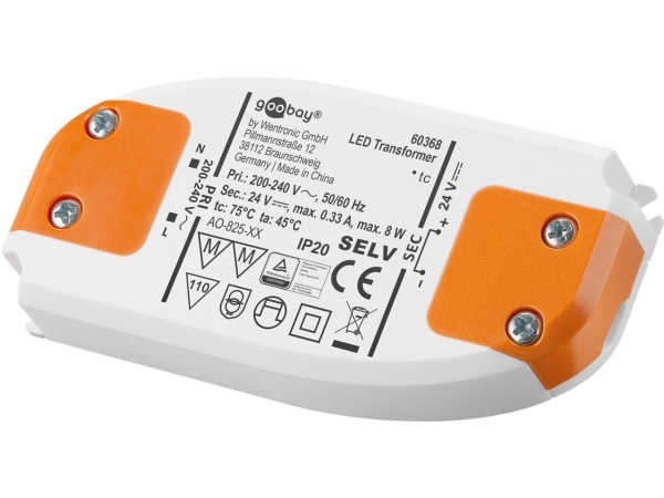 Goobay 60367, Elektronisk Transformator Till Belysning, Orange, Vit, Ip20, -20 - 45 ° C, Ce, Rohs Directive 2011/65/Eu [Ojeu L174/88-110, 01.07.2011, 8 W
