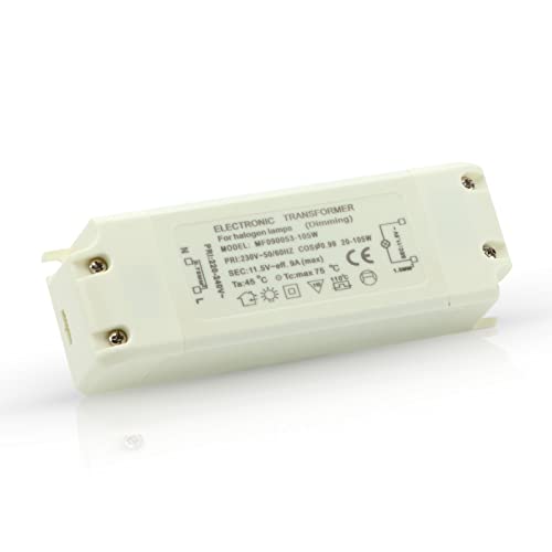 Yafido Dimbar elektronisk transformator 20-105 W för halogen. Oroa dig inte för plattning. Konstant utspänning, överspännings- och kortslutningsskydd (lågspänning)