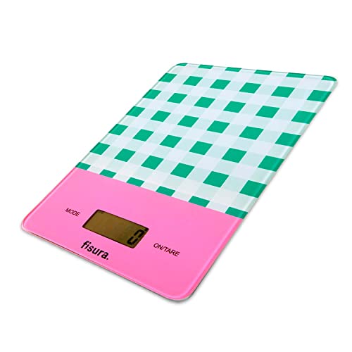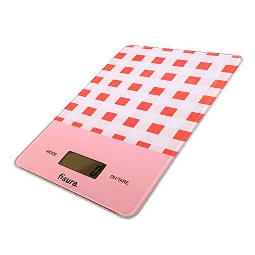 FISURA - Digital köksvåg Original elektronisk våg på 5kg/11lbs. Multifunktionell matvåg. Glas och ABS. 15 x 22 (Vichy röd)