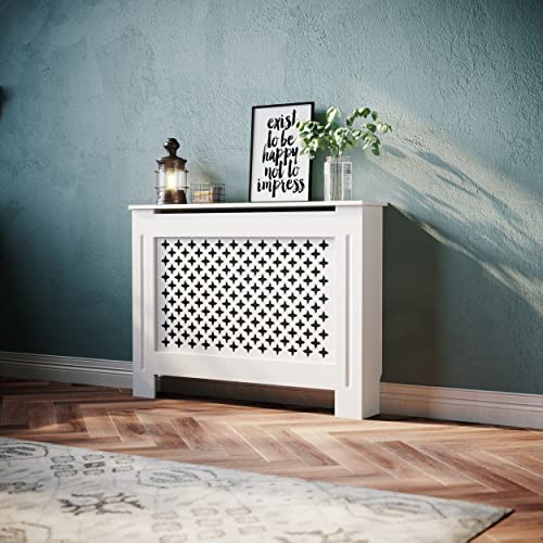 [en.casa] Värmebeklädnad 78 x 19 x 82 cm värmeskydd med hylla elementskydd vit 78 x 19 x 82 cm