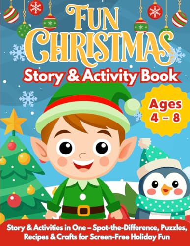 Fun Christmas Story & Activity Book for Kids Ages 4-8: Elf Adventure with Coloring Pages, Word Search, Mazes, Advent Calendar, Recipes & Wish List