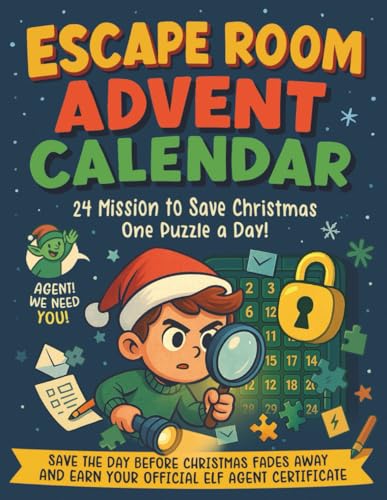 Escape Room Advent Calendar Book for Kids: 24 Puzzle Missions to Solve Riddles, Save Christmas & Earn Your Official Elf Agent Certificate | Perfect for Ages 6–9