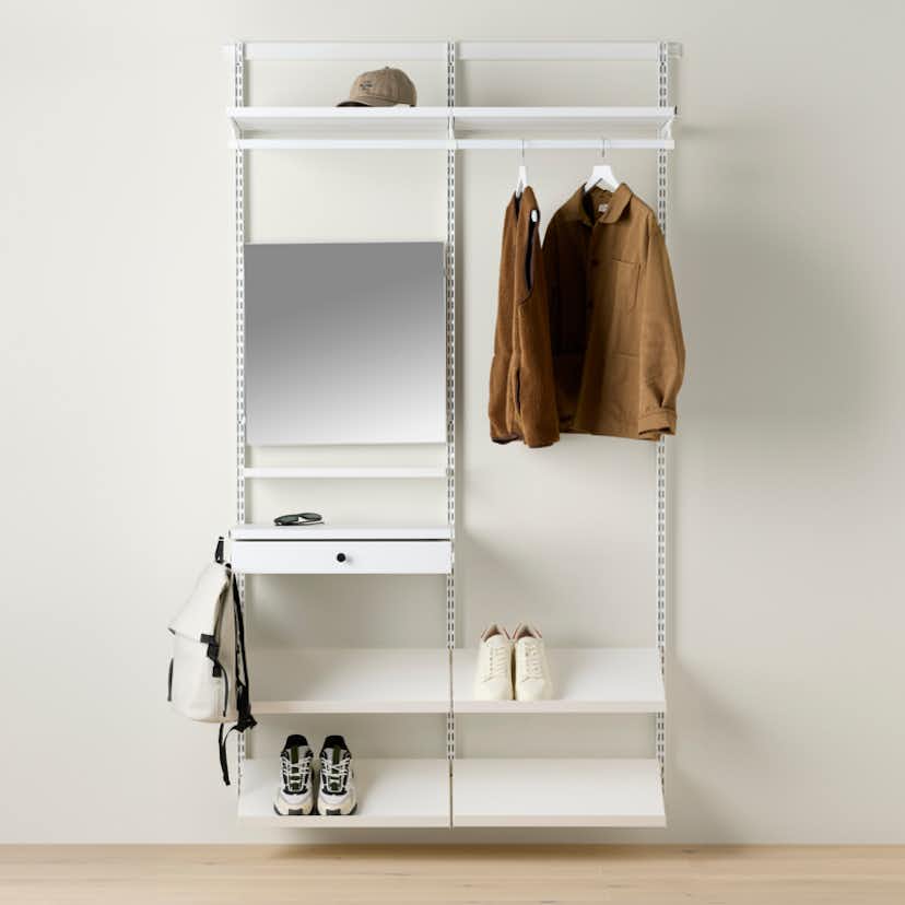 Hallösning Elfa Decor+ Enkel med Lutande Hyllor och Spegel