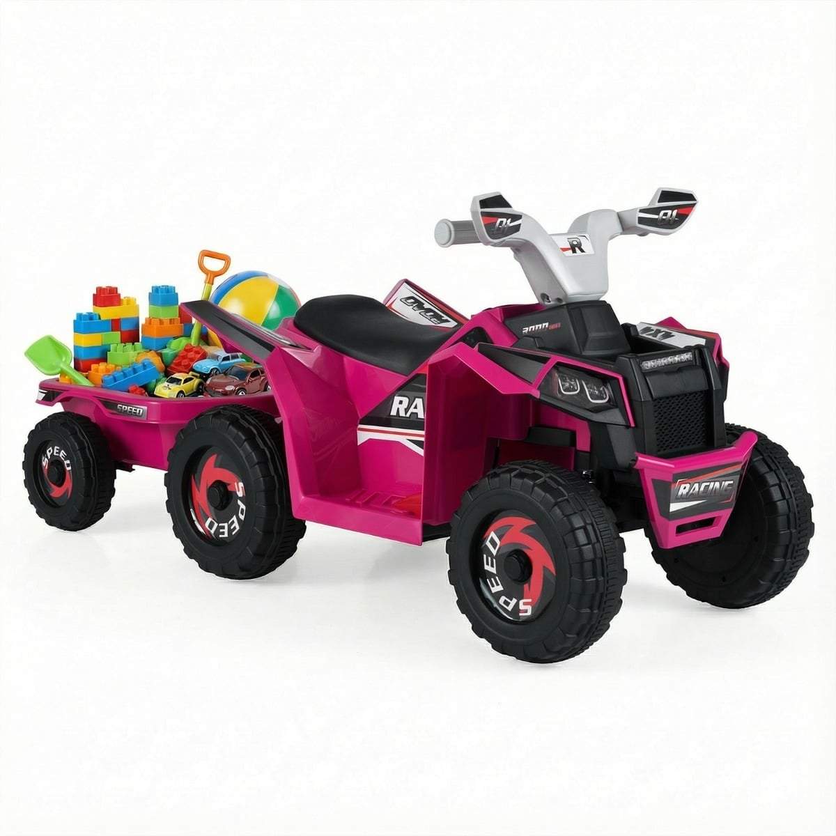 Elfyrhjuling med släpvagn för barn – Rosa, säkra och roliga åkturer