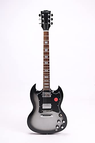SG Elgitarr för nybörjare 6 strängar gitarr mahognykropp, greppbräda i rosenträ, kromat hårdvara, högerhänt med väska – grå