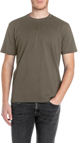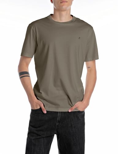Replay Basics mäns crew neck t-shirt av bomull, 759 Mud Green, XXL