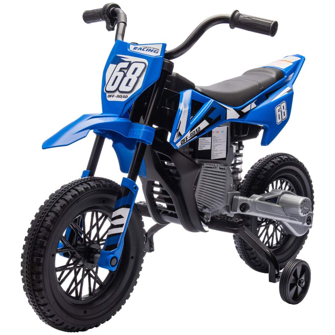 2-i-1 elmotorcykel för barn med avtagbara träningshjul & Strålkastare & Musik & Hornblått 74 x 38 x 48 cm
