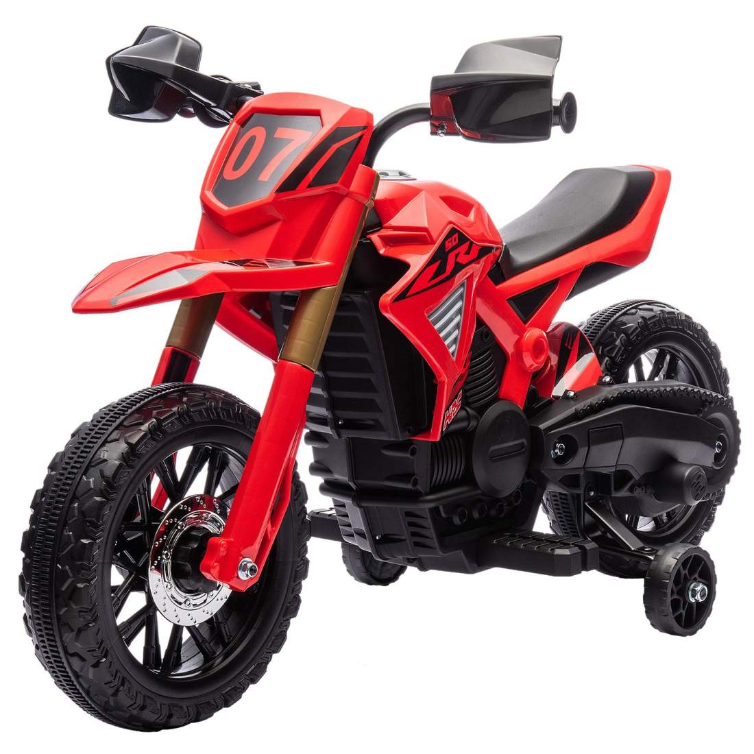 2-i-1 elmotorcykel för barn med avtagbara träningshjul & Strålkastare & Musik & Hornröd 74 x 38 x 48 cm