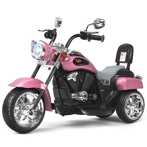 COSTWAY Elektrisk barnmotorcykel, 6 V, med justerbar strålkastare, trehjulings-elmotorcykel med ljud, tuta, backspeglar och pedaler, hastighet 2,5–3 km/h, rosa