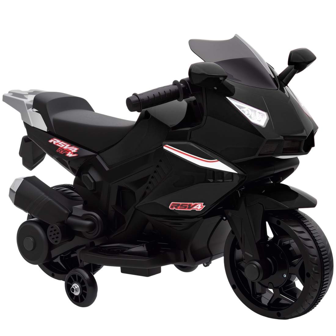 Elmotorcykel för barn, 6V barnmotorcykel med musik, barnfordon med LED-strålkastare, 3-5 km/h, för 3-6 år barn, max 25 kg, svart