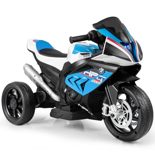 GOPLUS 6 V BMW elmotorcykel för barn, musik och strålkastare 3–8 år, 3 km/h 3 hjul fotpedal, trehjuling 30 kg (blå)