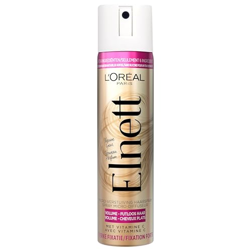 L'Oréal Paris Elnett Satin Hårspray Stark Fixering Mikrospridning Formel Skyddande och Upplysande Fuktskydd Naturlig Effekt Långvarig - 3 Flaskor 75 ml