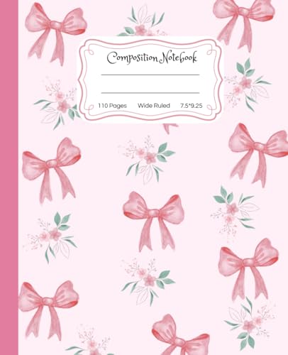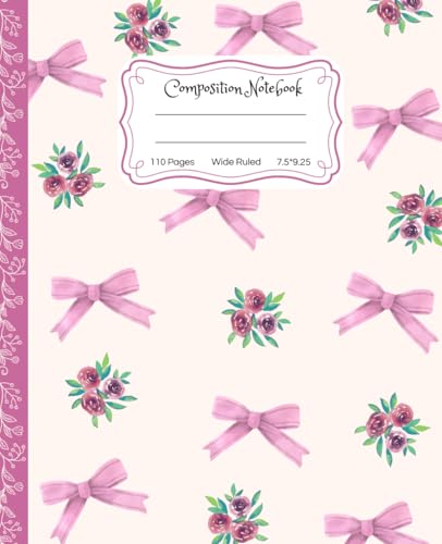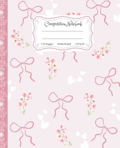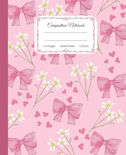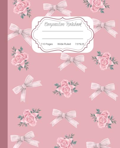 Super Cute Preppy Aesthetic Composition Notebook Pastel Pink Coquette Bows & Flowers: Wide Ruled Journal |110 pages| for Girls, Kids, Teens for All ... Girly School Supply With Vintage Details.