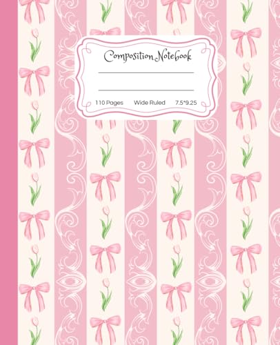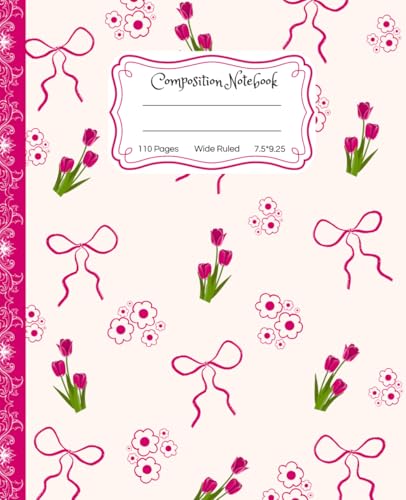 Super Cute Preppy Aesthetic Composition Notebook Pastel Pink & Creamy White Coquette Bows & Tulip Flowers: Wide Ruled Journal |110 pages| for Girls, ... Girly School Supply With Vintage Details.