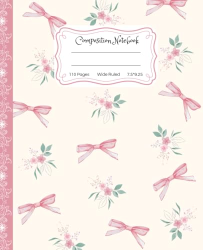 Super Cute Preppy Aesthetic Composition Notebook Pastel Pink & Creamy White Coquette Bows & Flowers: Wide Ruled Journal |110 pages| for Girls, Kids, ... Girly School Supply With Vintage Details.