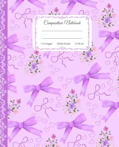 Super Cute Preppy Aesthetic Composition Notebook Pastel Purple Coquette Bows & Flowers: Wide Ruled Journal |110 pages| for Girls, Kids, Teens for All ... Girly School Supply With Vintage Details.