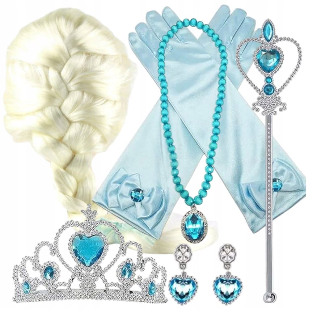 Vicloon Princess Accessoarer för flickor, 7 st Princess Accessoarer till Elsa Kostym med fläta/örhängen/handskar/tiara/magisk trollstav för cosplay julfödelsedagsfest, 3-10 år