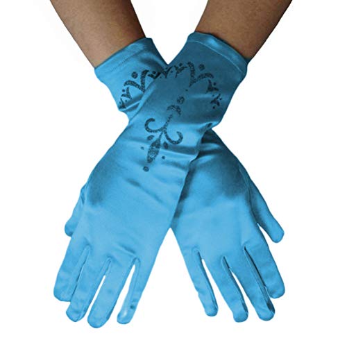 Wination Princess Elsa handskar, vacker och elegant satintyg prinsesshandskar utklädnad fest prestanda fotografitillbehör, lämpliga för barn i åldrarna 4–12 (med broderi), BLÅ, S/M